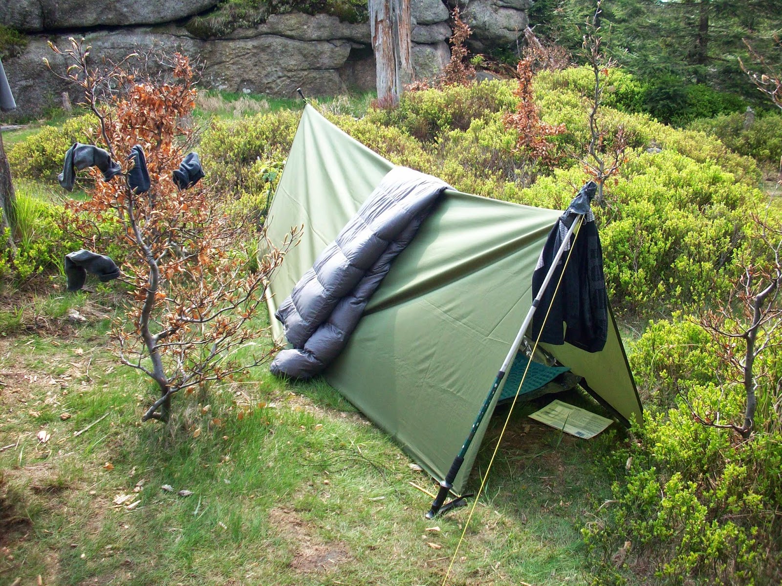 … przecież namiot też ma (nazwijmy to) „dach”, „podłogę”, „moskitierę”. W namiocie też kijki (trekkingowe lub znalezione na miejscu) mogą zastąpić maszty, ewentualnie można namiot podwiesić do pobliskich drzew. Może to kwestia doboru właściwego namiotu, który będzie miał podobną masę, a będzie pozbawiony wad tarpu?